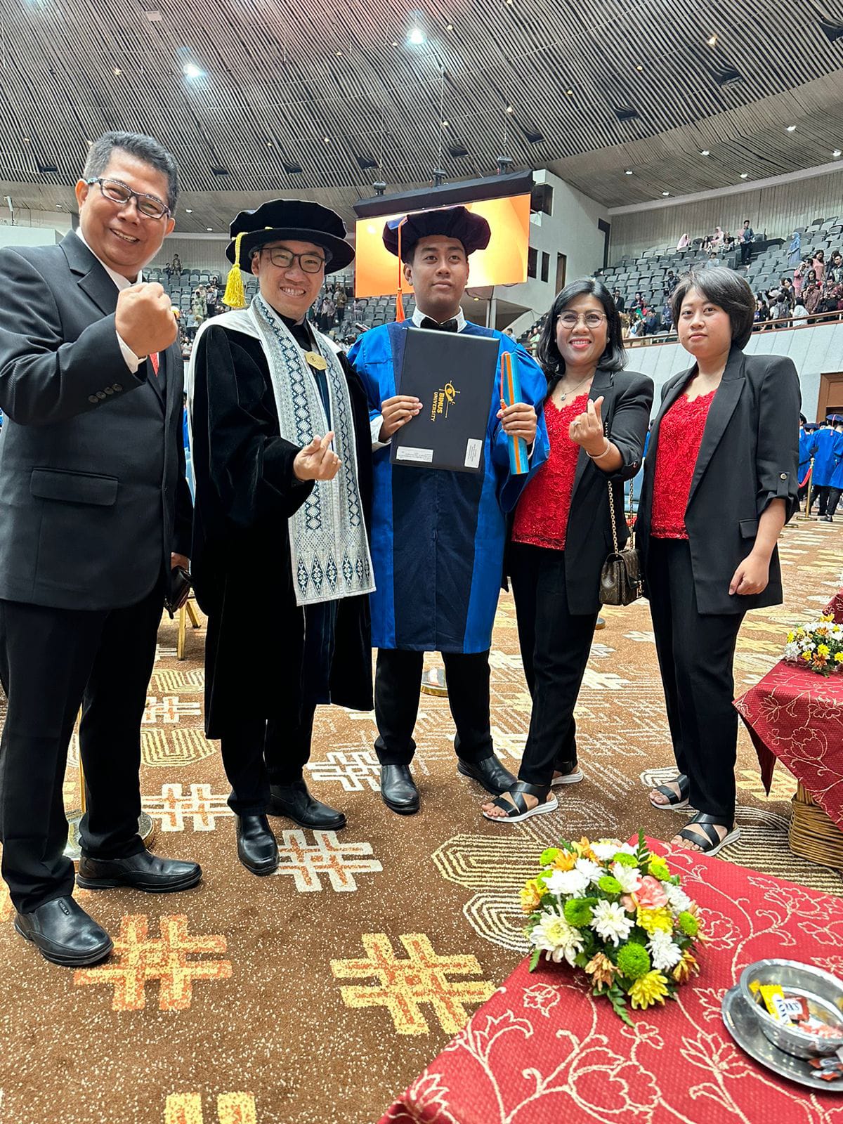 Acara wisuda nya Bayu, bersama Dr. Yohanes Wakil Rektor Bidang Kemahasiswaan Universitas BINUS